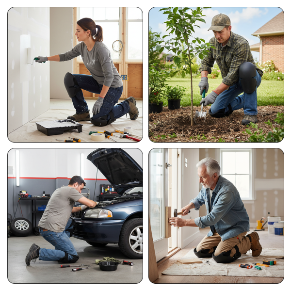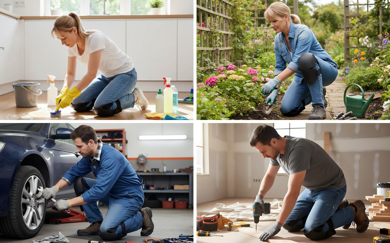 Faccio molte riparazioni in casa e queste hanno reso inginocchiarmi molto facile. Sono molto delicate sulle ginocchia e le cinghie mi calzano perfettamente.
