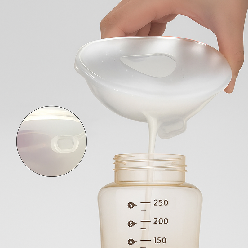 Inserisci semplicemente nel reggiseno per iniziare a raccogliere in silenzio. Versare il latte nelle bottiglie è veloce e senza sporcare.
