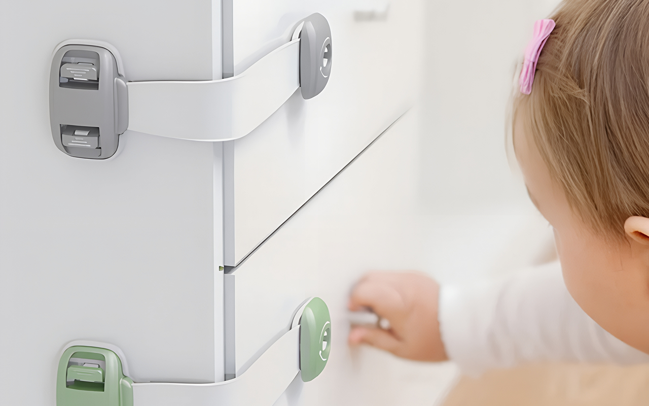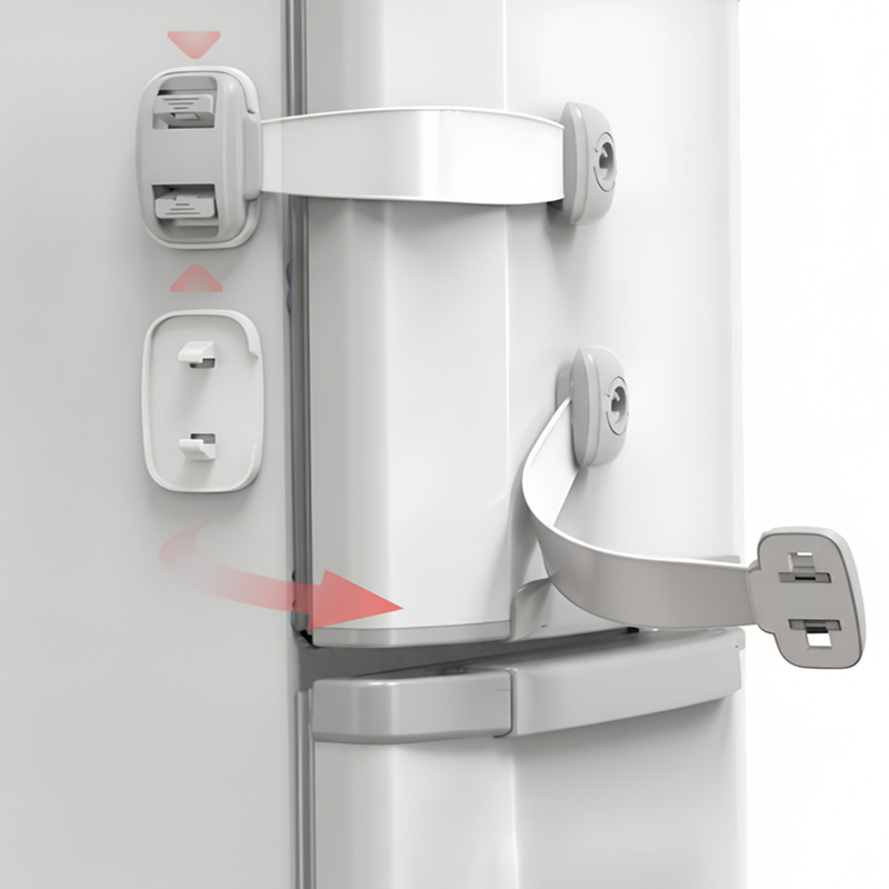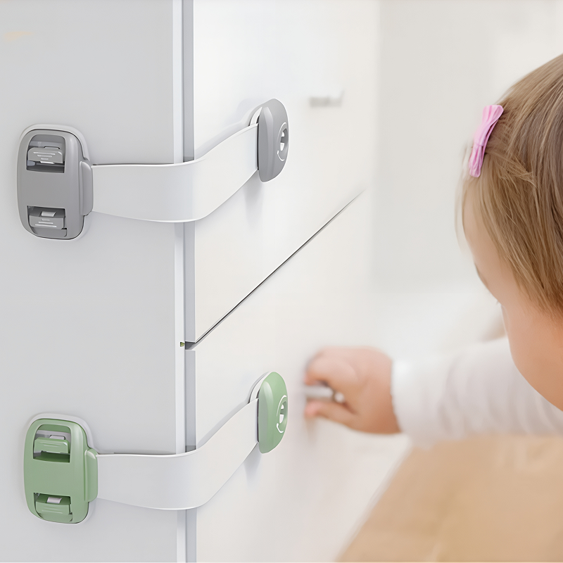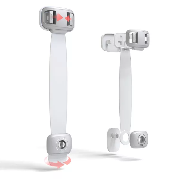La serratura di sicurezza Ortorex tiene i bambini curiosi lontani dal pericolo. Il design flessibile si adatta a WC, frigoriferi, armadietti e cassetti. Nessuna preoccupazione per segni lasciati o angoli graffiati.