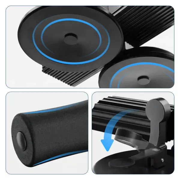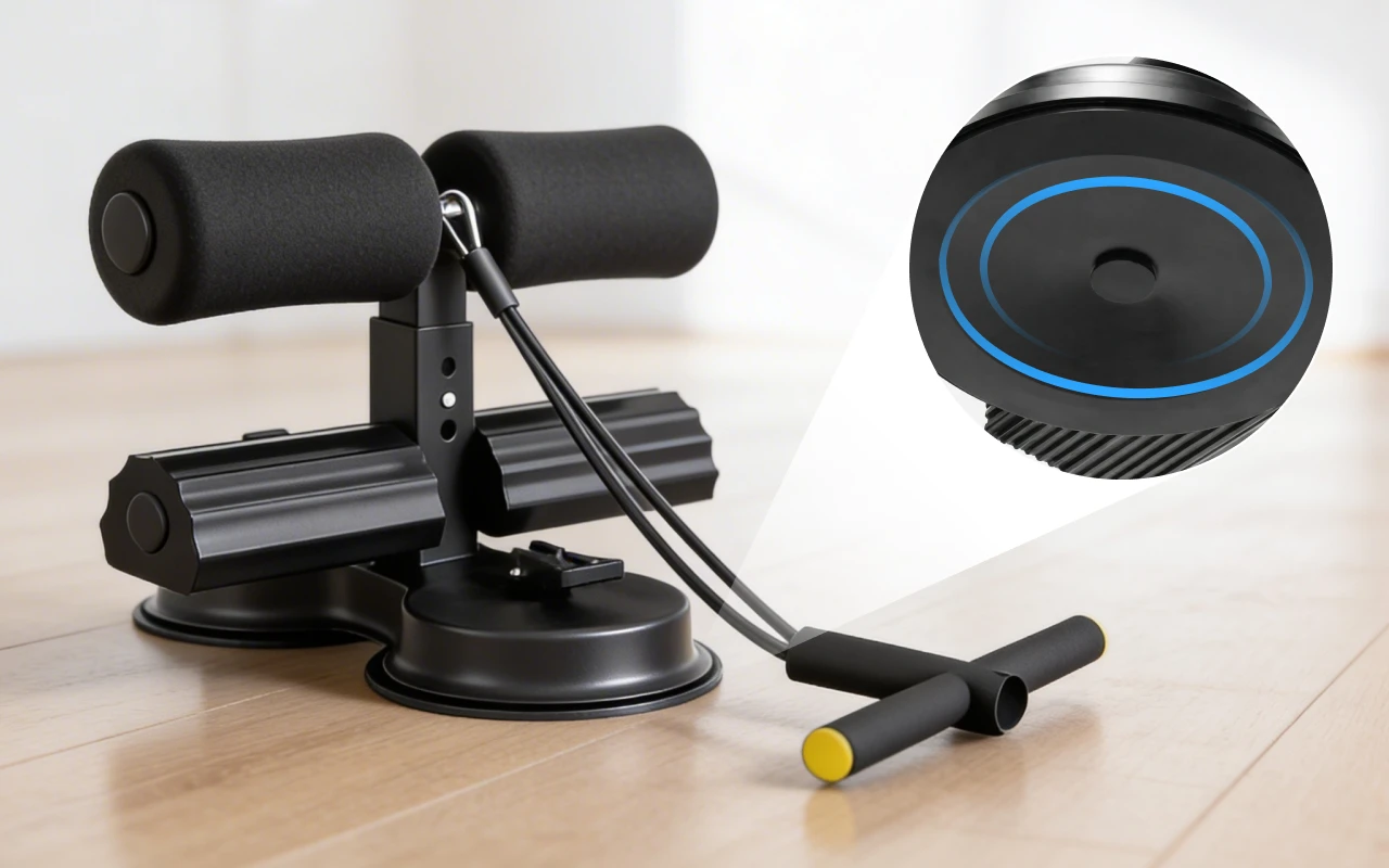 La potente ventosa mantiene il dispositivo fisso sui pavimenti lisci. Ogni movimento risulta stabile, rendendo l’allenamento quotidiano più sicuro.
