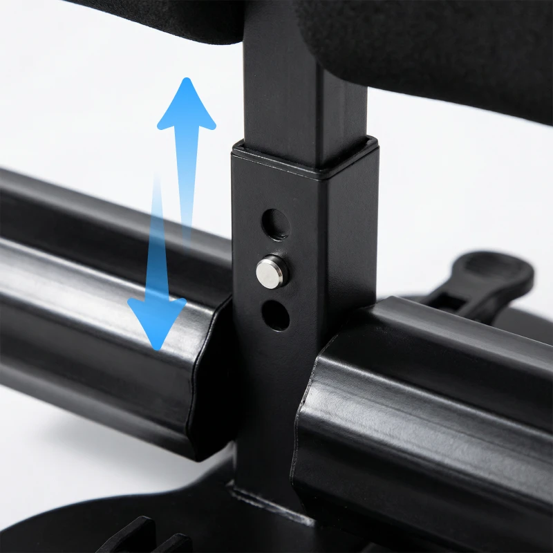 Mio marito ed io condividiamo questo supporto per addominali. Abbiamo altezze diverse, ma regolare i livelli richiede pochi secondi e ci sentiamo entrambi stabili durante crunch e sollevamenti delle gambe.