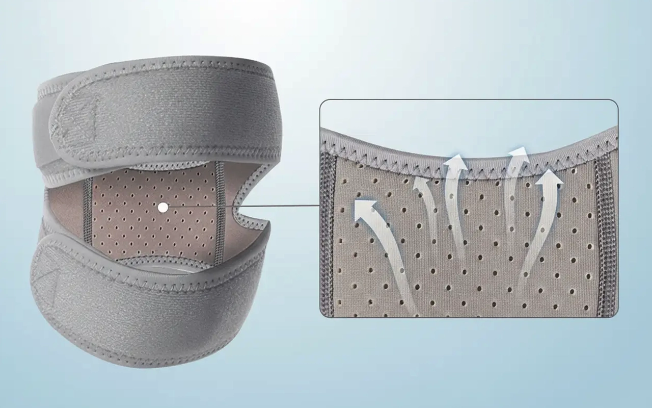 Il tessuto a rete 3D lascia respirare la pelle, evitando l'accumulo di calore. Il sudore si asciuga rapidamente, così il ginocchio resta leggero e fresco tutto il giorno.