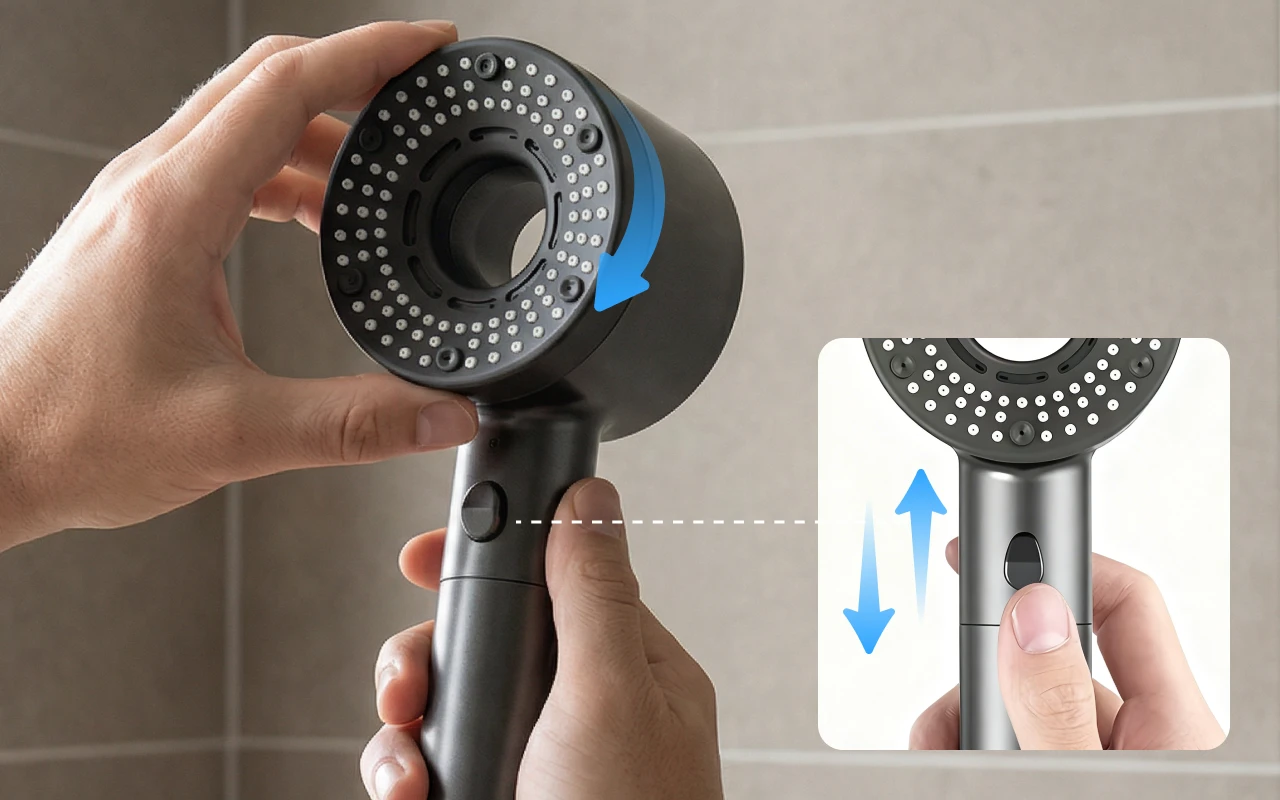 Cambia modalità o metti in pausa il flusso con un solo gesto. Tutti possono trovare l’impostazione perfetta in pochi secondi con la doccetta Ortorex.