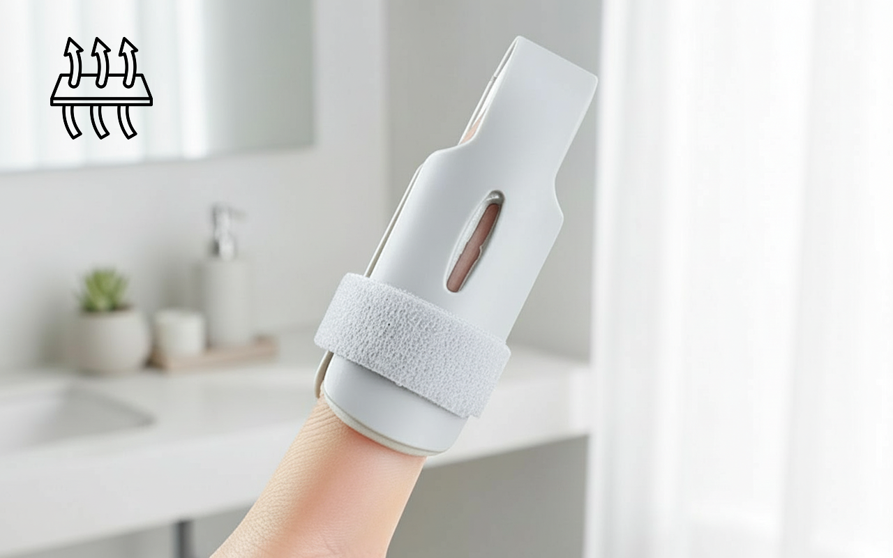 Fori speciali permettono all'aria di circolare facilmente, mantenendo la pelle fresca e asciutta. Indossa la stecca per dita Ortorex più a lungo senza sudore o prurito.
