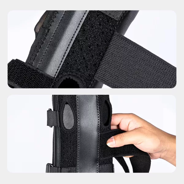 Una solida placca in metallo integrata mantiene l'articolazione stabile. Previene torsioni improvvise e garantisce movimenti più sicuri.