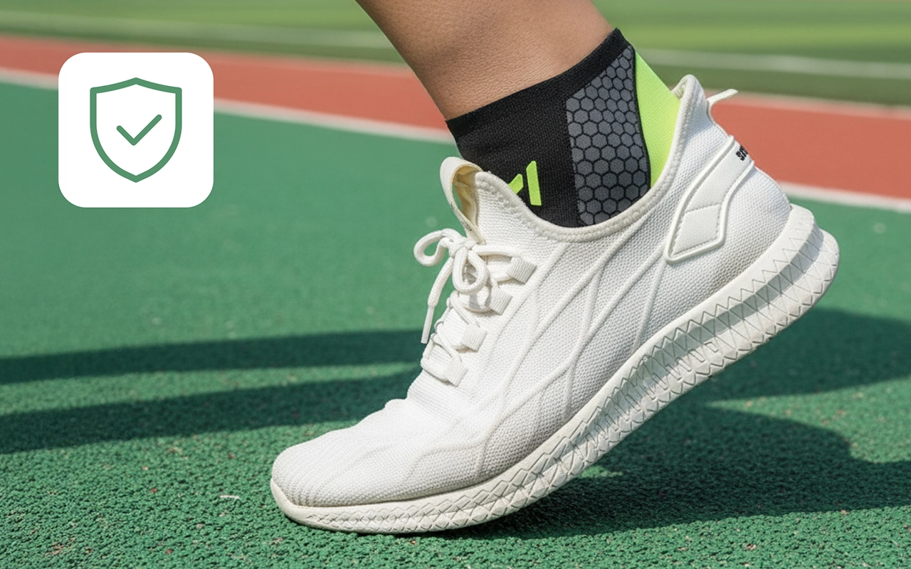 La struttura elastica robusta mantiene il piede stabile durante lo sport. Riduce il rischio di infortuni così puoi giocare con sicurezza.