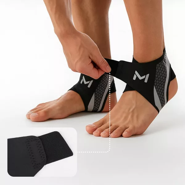 Il velcro rende la vestibilità semplicissima. Posso infilarla in un attimo prima di allenarmi a basket. Il piede resta ben fermo per tutta la partita.