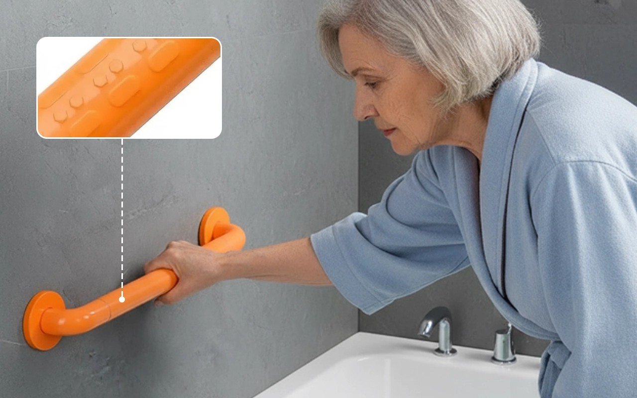 Ho comprato questa maniglia quando mio figlio si è rotto una gamba. L’impugnatura lo aiuta a mantenersi in equilibrio e si sente molto più sicuro ad andare in bagno.