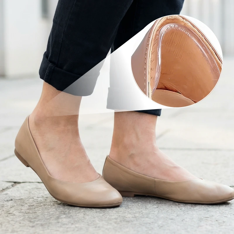 Inserisco i cuscinetti in silicone nelle mie ballerine per andare al lavoro. Restano al loro posto, impediscono ai talloni di scivolare e non temo più il tragitto a piedi.