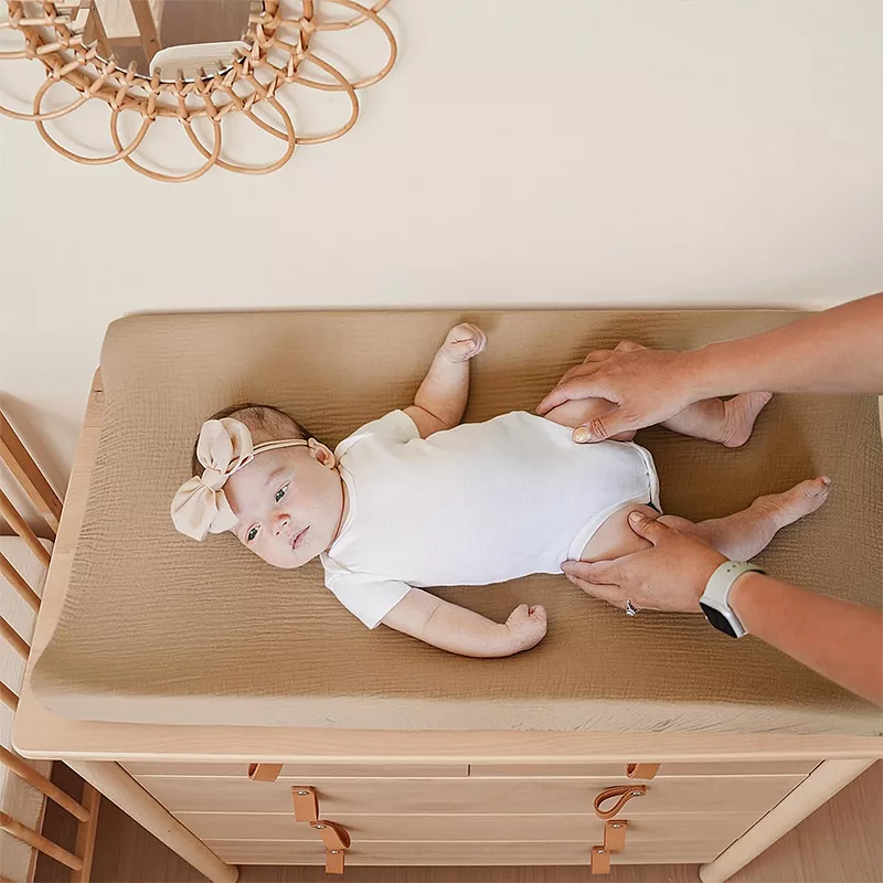 I bordi elastici impediscono che scivoli o si raggrinzisca. Le nostre coperture sono adatte alla maggior parte di culle, lettini e fasciatoi.