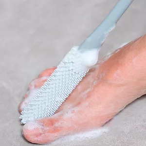 Rimani fresco pulendo le zone difficili tra le dita dei piedi. Le setole in silicone raggiungono dove altri strumenti non possono. Niente più piegamenti scomodi o fastidi mentre lavi i piedi. Ogni doccia lascia la pelle liscia e confortevole.