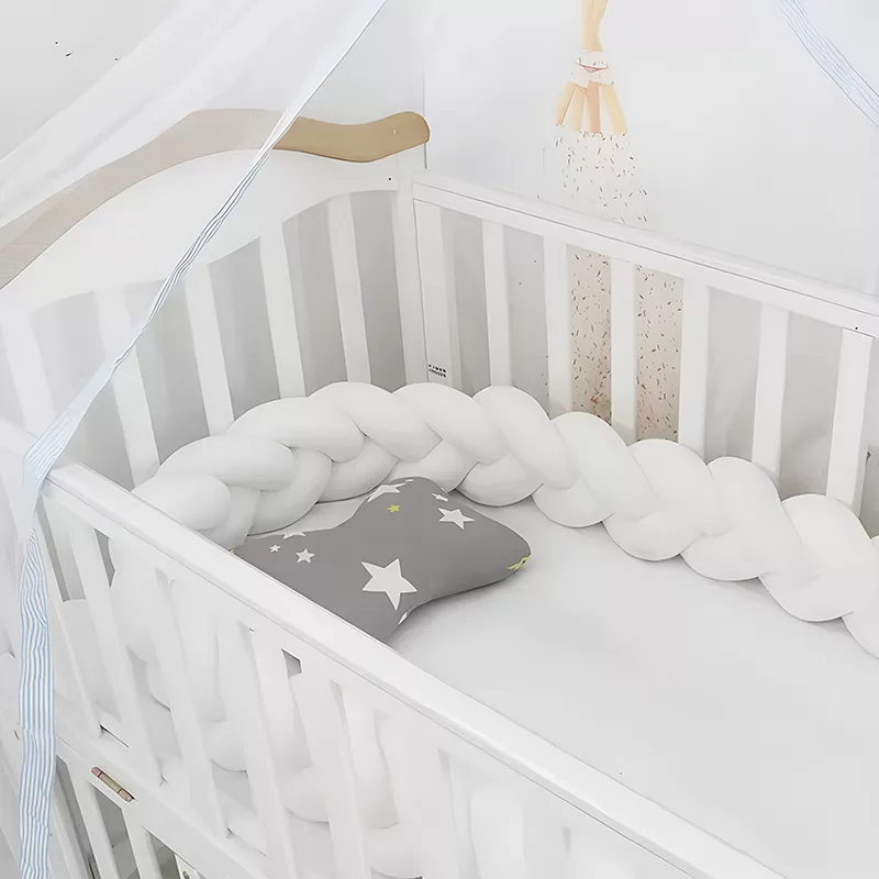 Il mio bambino dorme tranquillamente senza urti. La treccia aggiunge una morbidezza accogliente!
