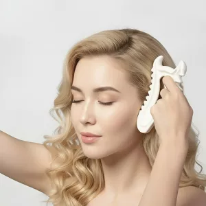Il gua sha fa sembrare il mio viso luminoso e sano senza troppo sforzo. La ceramica è fresca all’inizio, il che è molto rilassante.