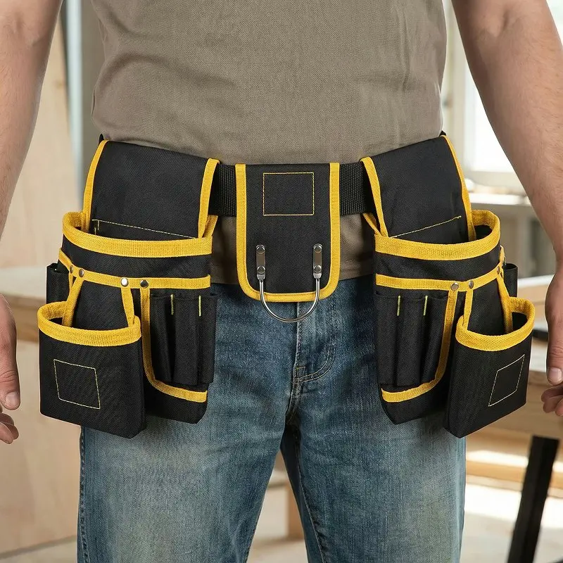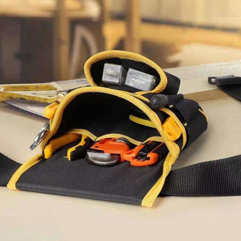 Indosso questa borsa durante i lunghi turni di cablaggio delle case. La fascia imbottita salva i miei fianchi e posso afferrare nastro, tronchesi, viti senza guardare in basso.
