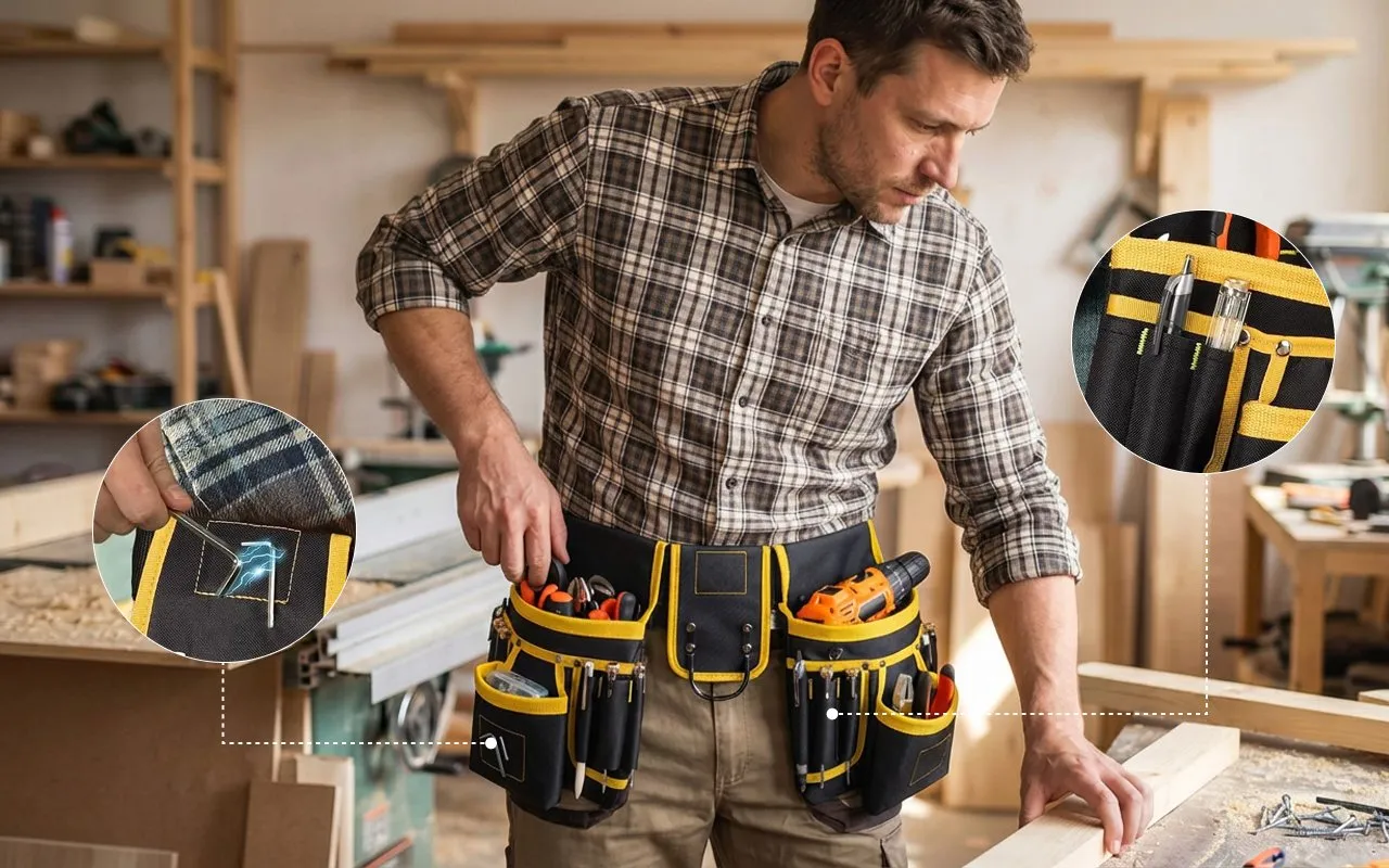 Le cuciture rinforzate gestiscono facilmente martelli pesanti, trapani e ferramenta ingombrante. Il tessuto resistente non teme la polvere del cantiere, servendo muratori, elettricisti e idraulici attraverso innumerevoli progetti.