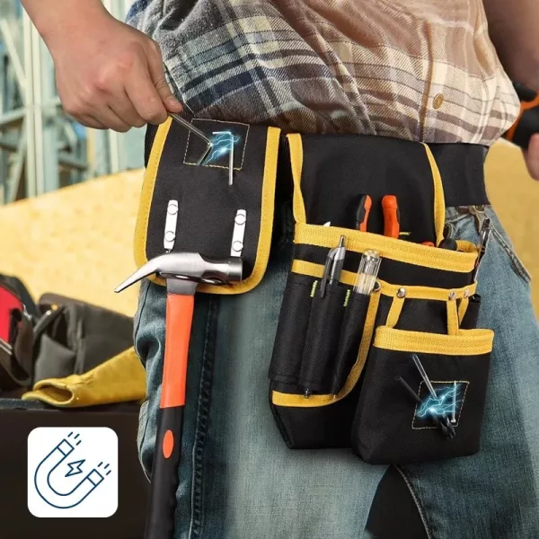 Uso la cintura per i lavori di carpenteria nel mio garage. Il peso si appoggia bene sui fianchi e le tasche tengono i chiodi separati dagli attrezzi piccoli.