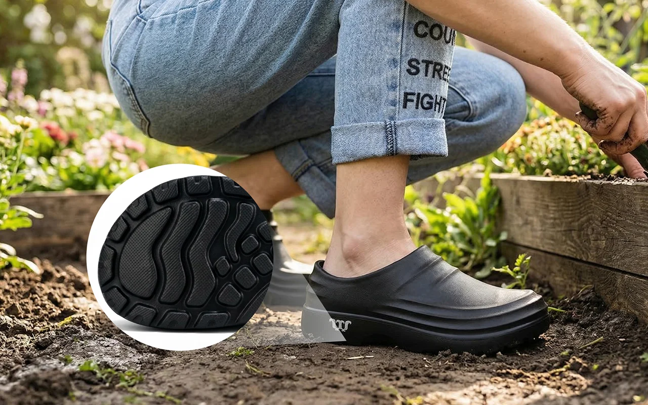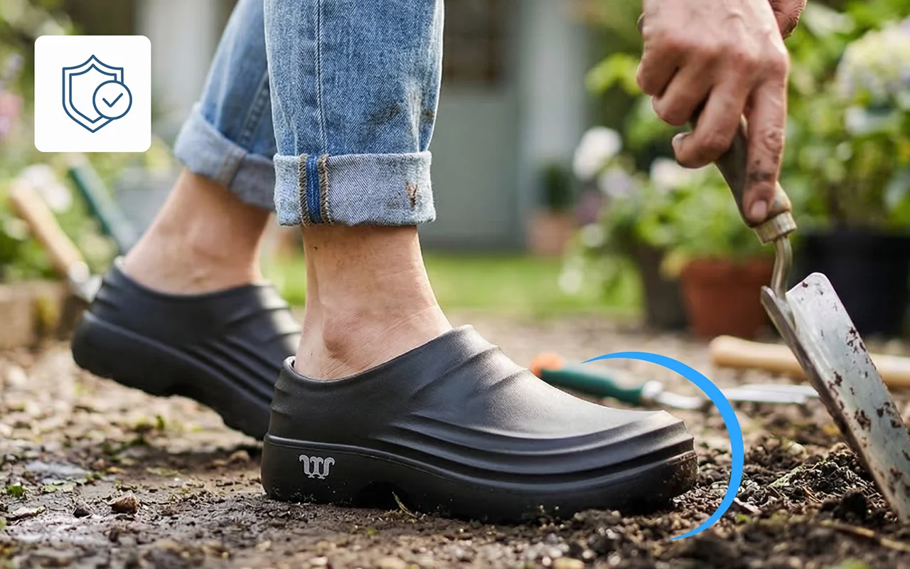 Uso questi zoccoli quando lavo l’auto e quando taglio il prato. L’aderenza sul cemento bagnato è ottima, gli archi plantari sono ben sostenuti e i piedi rimangono asciutti e comodi.