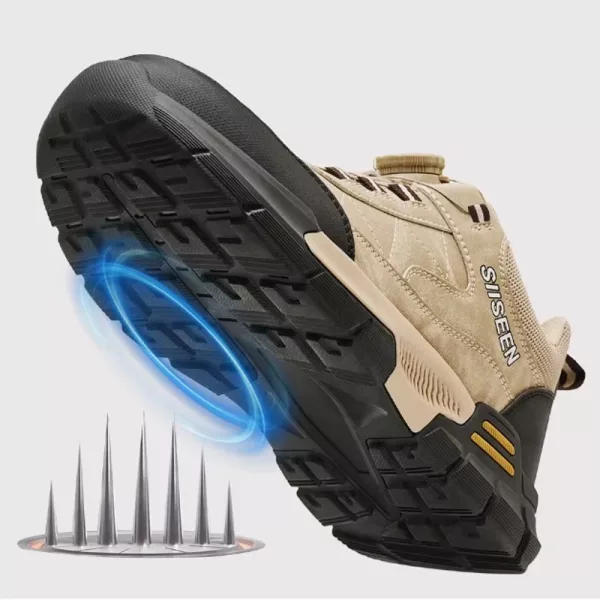 L'intersuola in Kevlar protegge le suole da chiodi e vetri appuntiti. La struttura flessibile ti permette di camminare o inginocchiarti facilmente durante la giornata lavorativa.