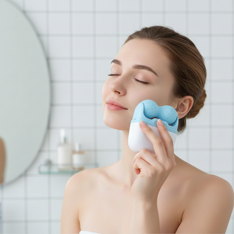 Il face roller freddo aiuta le mie guance a sembrare meno gonfie.