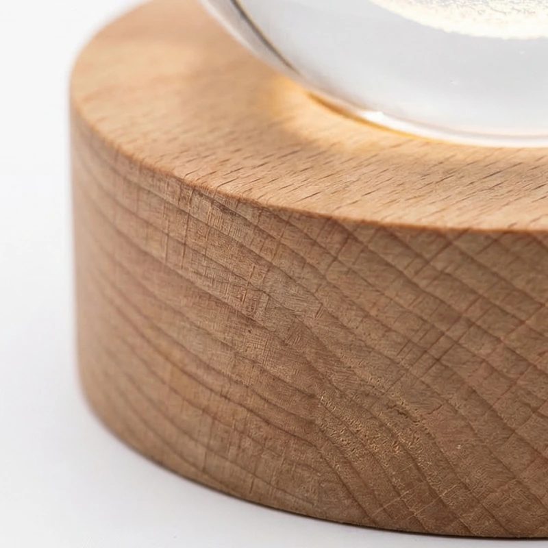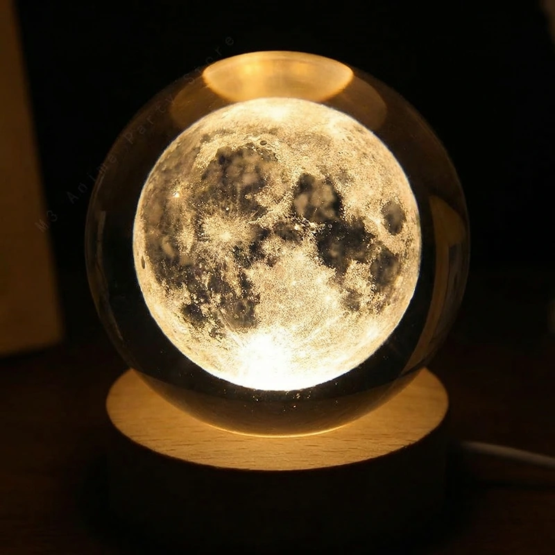 La lampada di cristallo sta benissimo sul mio comodino. La base in legno sembra solida e la sfera ha questi incredibili piccoli dettagli di galassia.