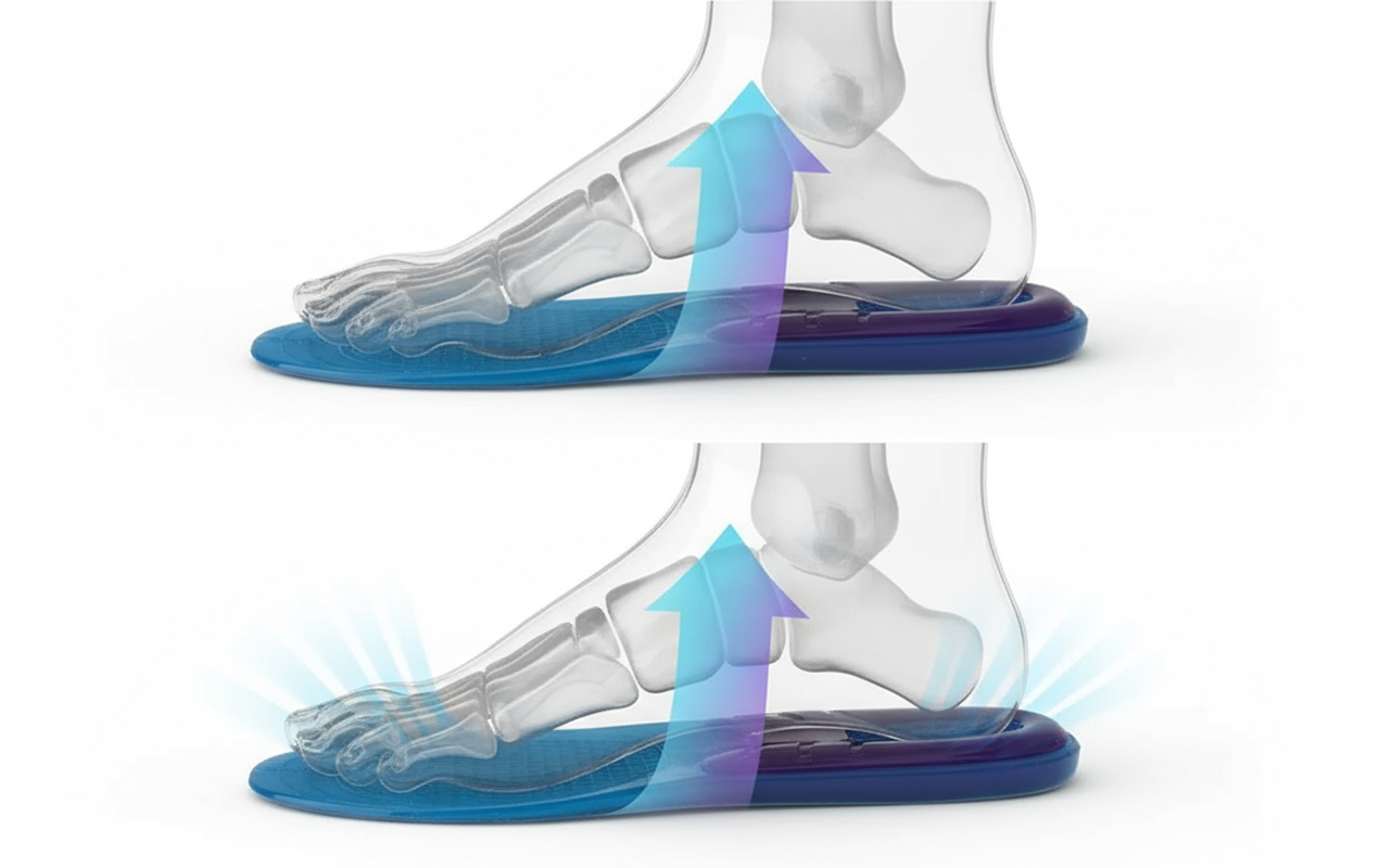 Gli spessi cuscinetti in gel di silice ammorbidiscono ogni impatto mentre ti muovi. Articolazioni e talloni rimangono protetti, riducendo lo sforzo quotidiano.