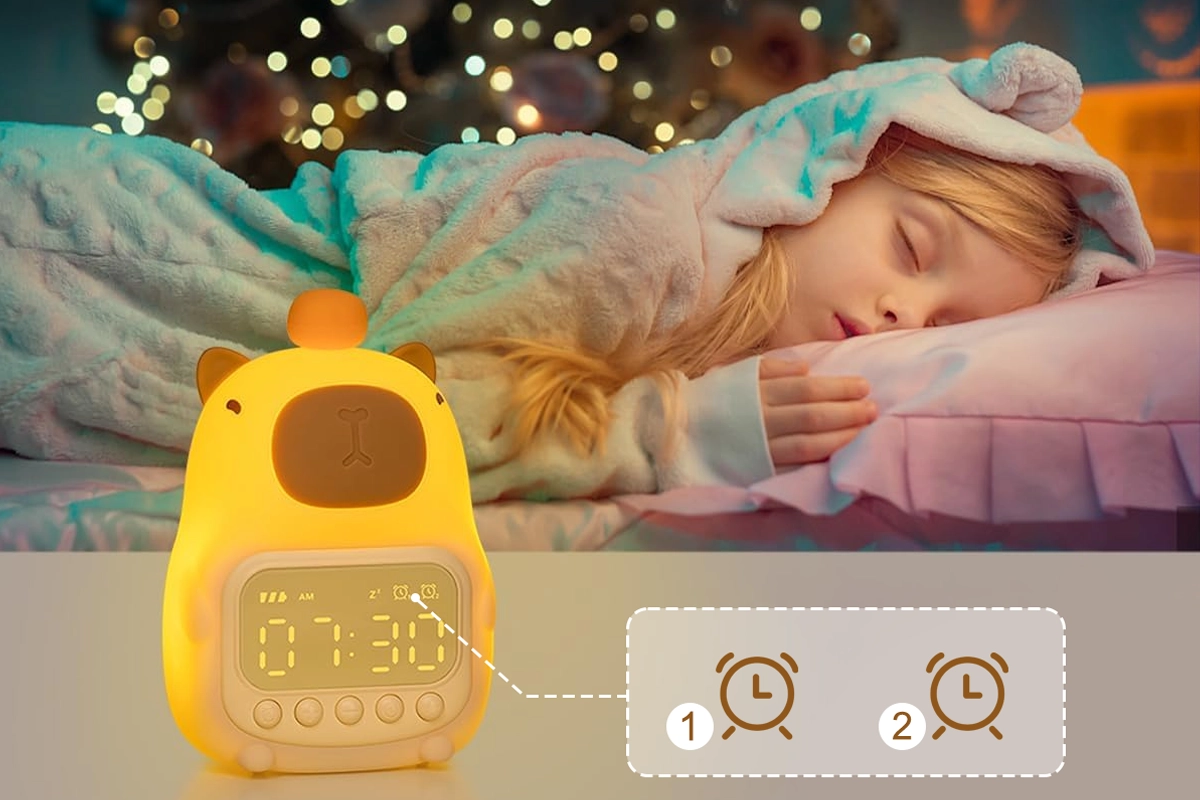 La luce delicata aiuta i bambini a sentirsi al sicuro dopo l’ora di andare a letto. I comandi digitali semplici rendono il risveglio facile ogni giorno. Materiali sicuri e morbidi risultano piacevoli e rassicuranti durante la notte. La sveglia a forma di carino capibara Ortorex aggiunge allegria a ogni camera da letto.