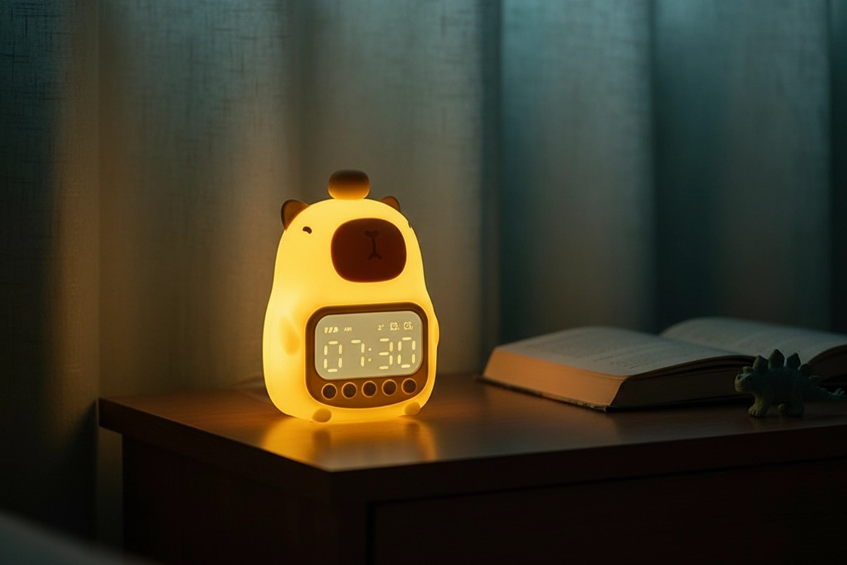 Ho preso questa sveglia capibara per la stanza di mio figlio. La luce soffusa rende la nanna tranquilla e i pulsanti semplici lo hanno aiutato a imparare a impostare da solo la sveglia.