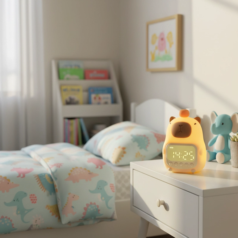 Ho preso questa sveglia capibara per la stanza di mio figlio. La luce soffusa rende la nanna tranquilla e i pulsanti semplici lo hanno aiutato a imparare a impostare da solo la sveglia.