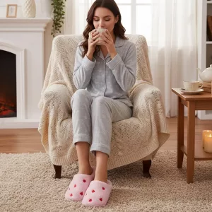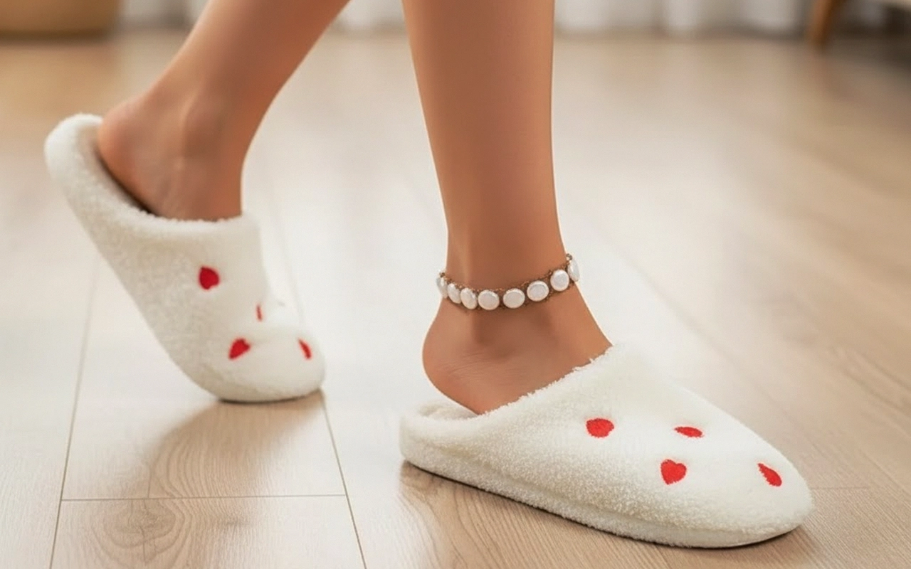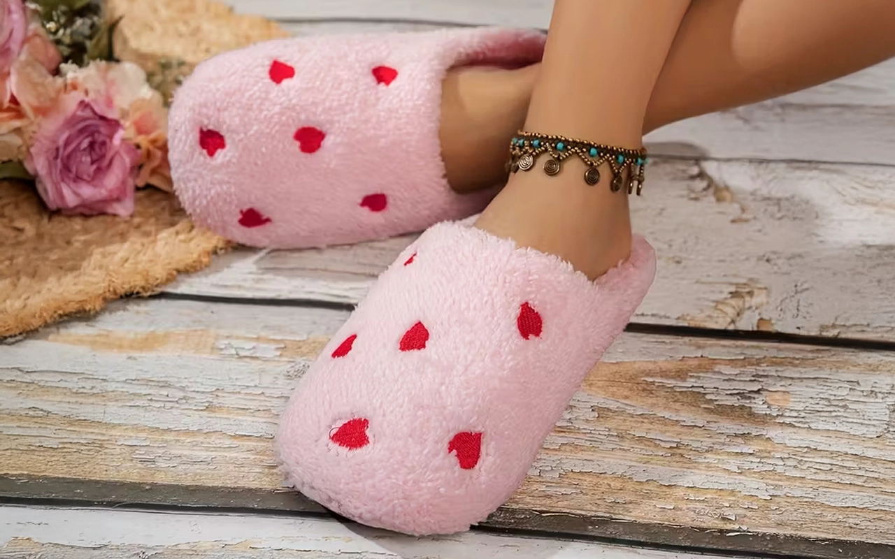 Dolci cuoricini donano a ogni outfit un tocco di allegria. Queste pantofole rendono speciale e divertente il relax in casa.