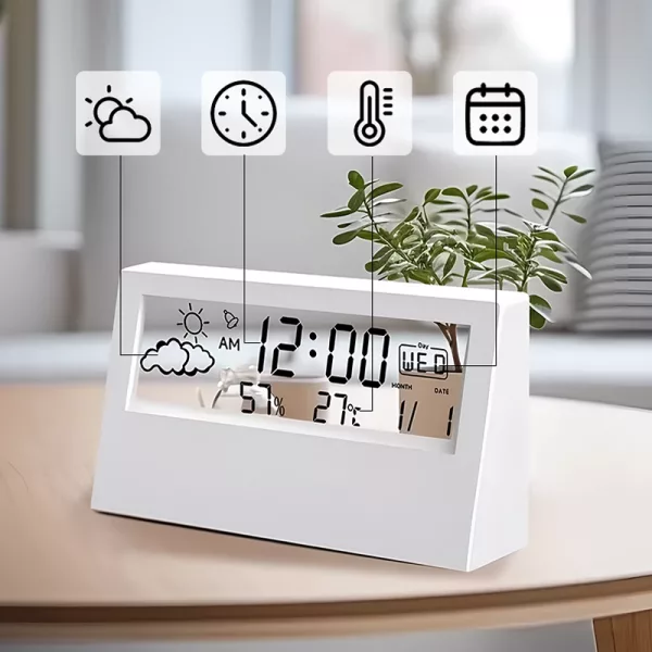 Apprezzo sempre la possibilità di controllare temperatura e umidità prima di uscire per andare al lavoro. La sveglia è abbastanza forte ma non esagerata.