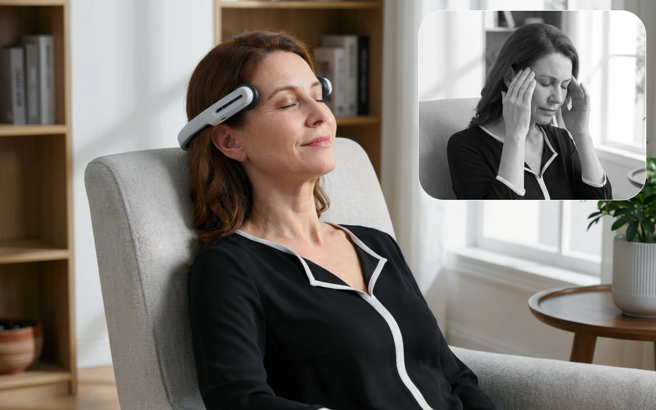 Senti la pressione alleviarsi rapidamente da ogni lato del cuoio capelluto. Vivi comfort e relax mentre il fastidio svanisce.