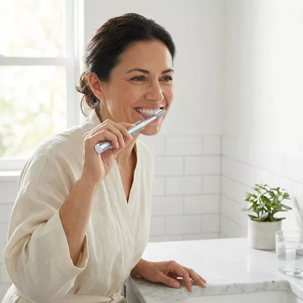 Adoro questo spazzolino! I miei denti sono super lisci e ho notato che il mio sorriso è più luminoso dopo averlo usato per alcuni giorni. Le setole delicate sono perfette.