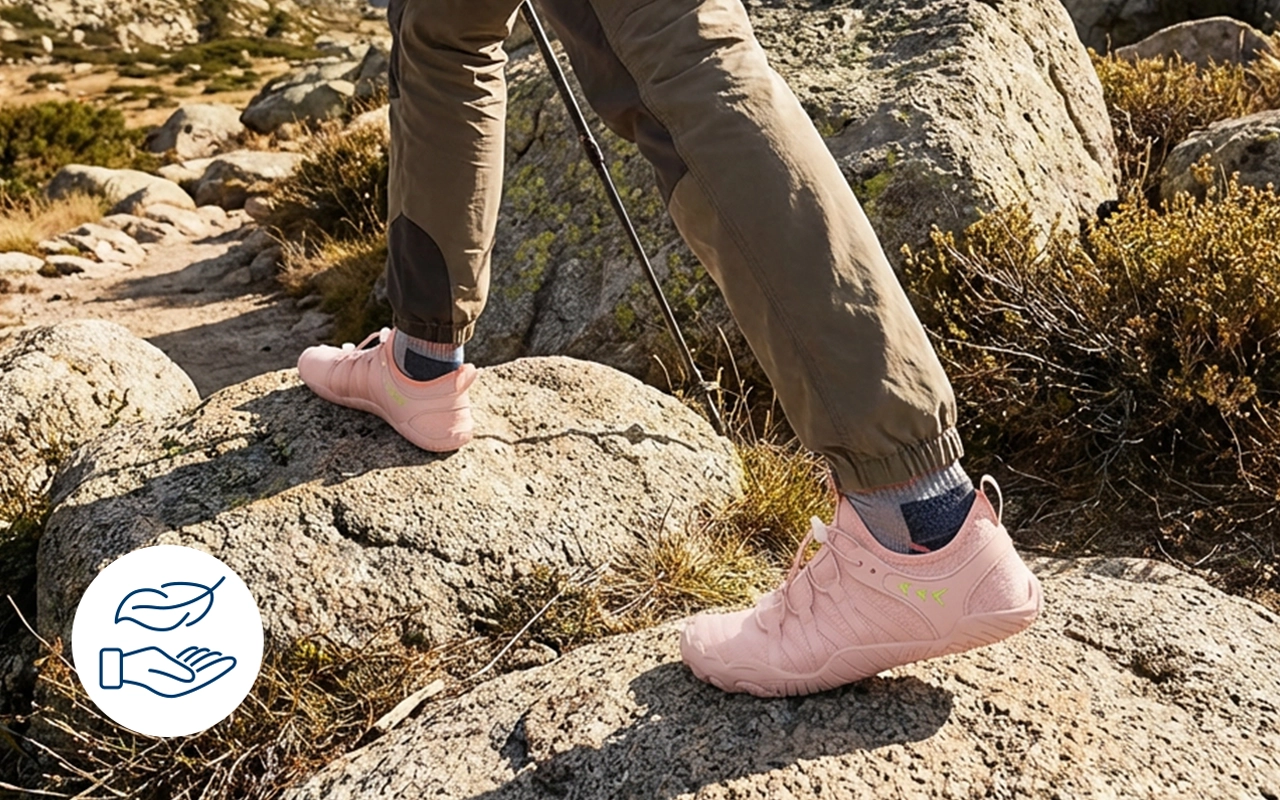 Ho fatto trekking su sentieri rocciosi e finalmente le mie dita non si irrigidiscono! Queste scarpe larghe hanno un’ottima aderenza anche sulle colline ripide e mi permettono di muovere le dita. Ottime anche per le passeggiate di ogni giorno.