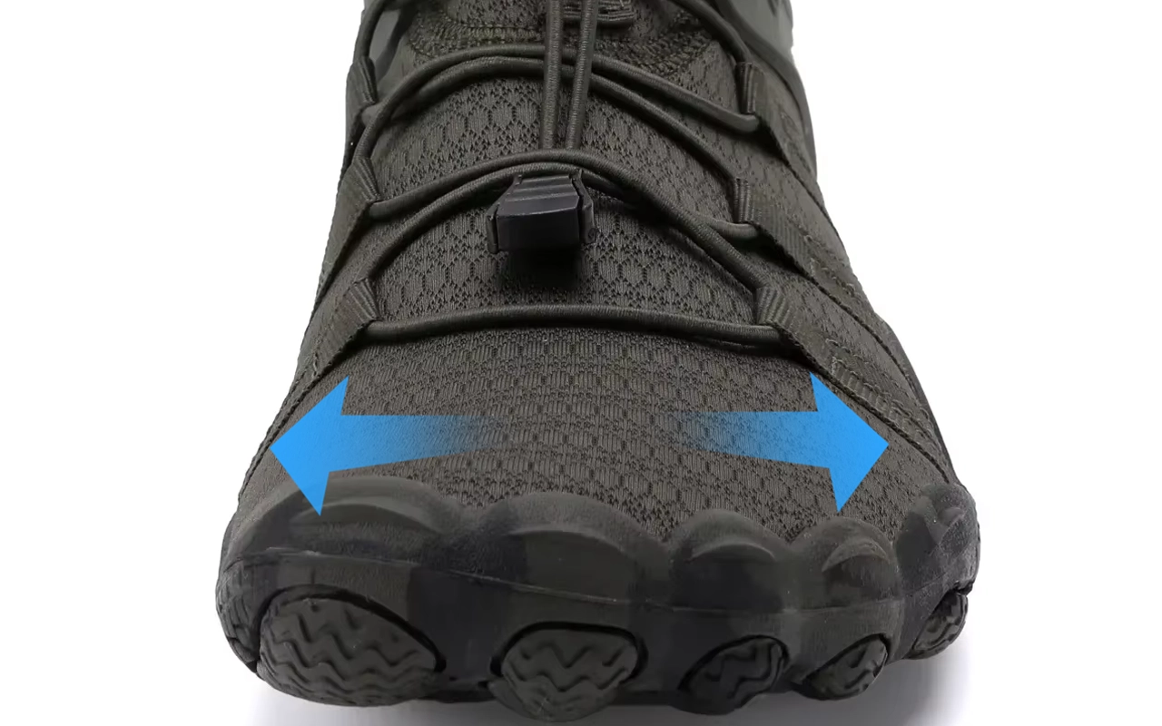 Ogni avventura è più facile quando i piedi hanno spazio. Le scarpe Ortorex a pianta larga aiutano le dita a distendersi, permettendoti di muoverti liberamente. La chiusura rapida a coulisse significa niente più lacci da sistemare in natura. La struttura flessibile rende i passi leggeri su ogni sentiero o spiaggia.