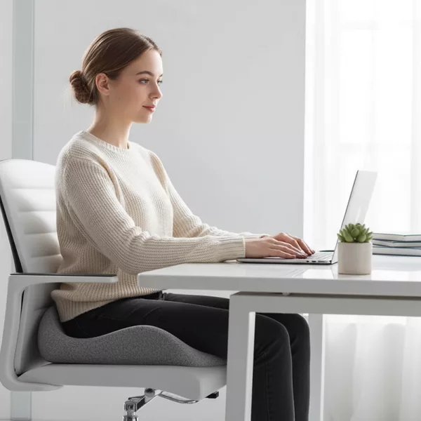 Consiglio questo cuscino a chiunque debba stare seduto ore ogni giorno. Il dolore al coccige è sparito e il materiale non si surriscalda mai. La mia sedia è molto più comoda.