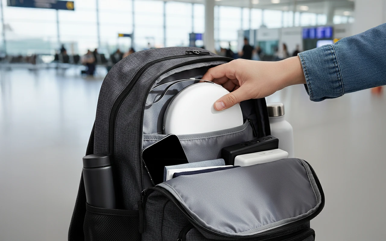 Si inserisce in una custodia piccolissima, risparmiando spazio prezioso in valigia. Portalo ovunque, da aerei a viaggi in auto, senza problemi.
