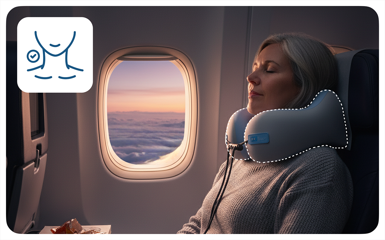 I contorni intelligenti avvolgono il viso, mantenendo il collo stabile. Niente più dolori al risveglio dopo aver dormito seduti.