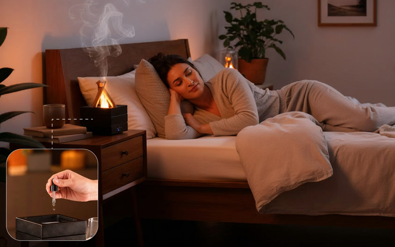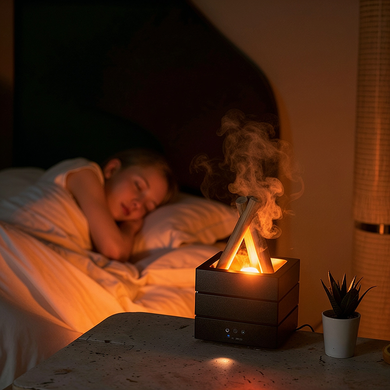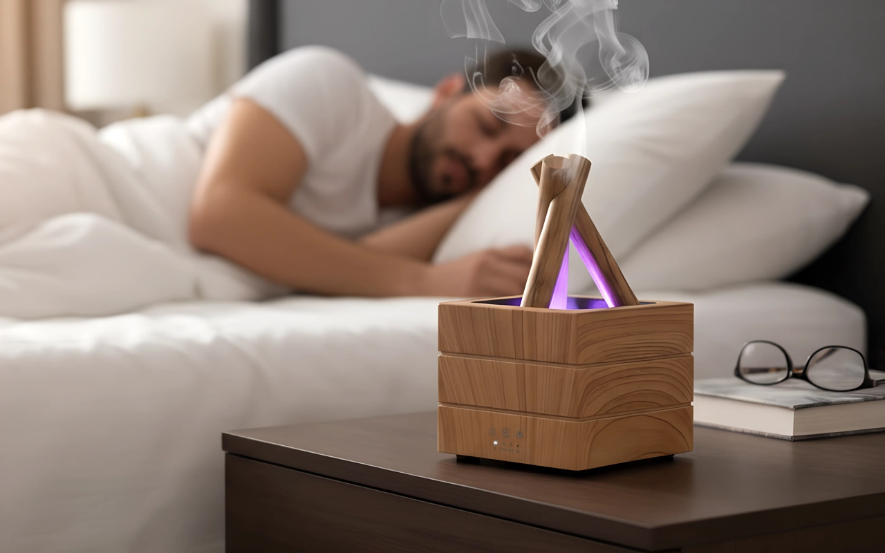 Tenere il diffusore di aromi da falò in camera da letto aiuta mio marito a dormire serenamente. Il timer mi permette di impostarlo senza preoccuparmi di spegnerlo.
