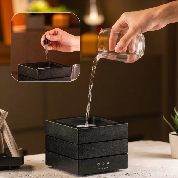 La nebbia di aromaterapia calma i nervi e libera la mente. Aggiungi i tuoi oli preferiti per rilassarti, alleviare lo stress e dormire meglio.