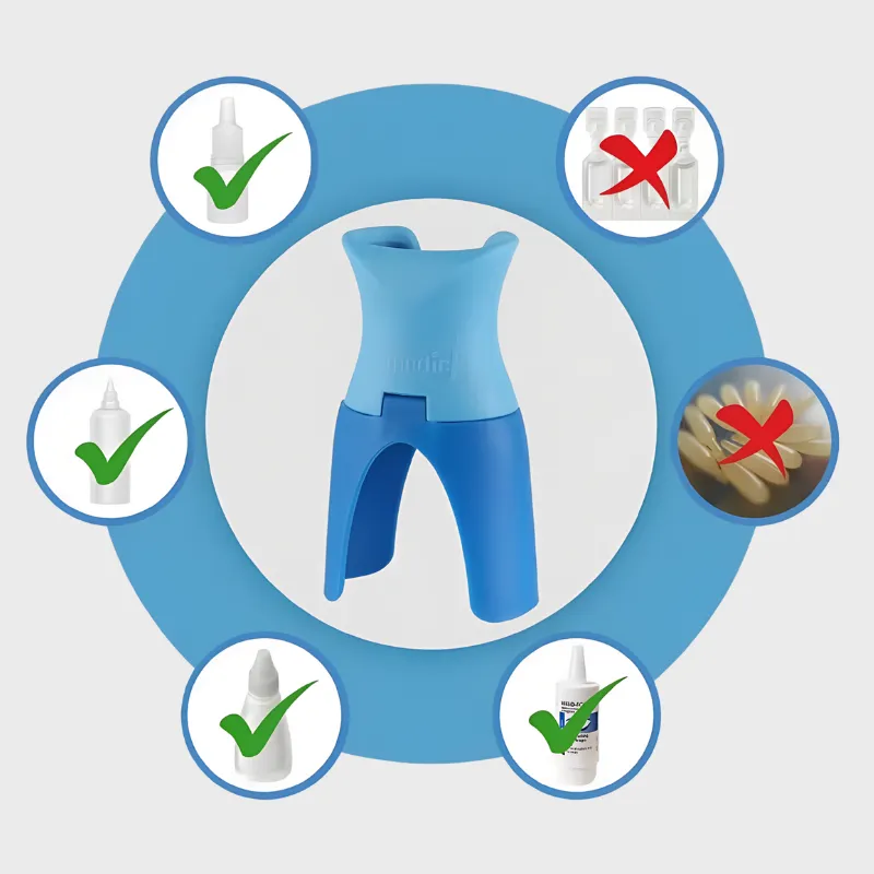 Il dispenser Ortorex per gocce rende i trattamenti oculari rapidi e senza sprechi. Il suo design intelligente aiuta a posizionare il flacone esattamente dove serve. Basta occhi che sbattono, difficoltà o gocce perse.