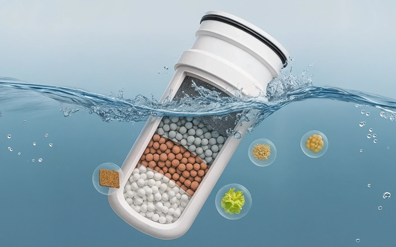 Un elemento ceramico cattura ruggine e sedimenti a livello microscopico. Garantisce che solo liquido chiaro passi attraverso per ogni utilizzo.