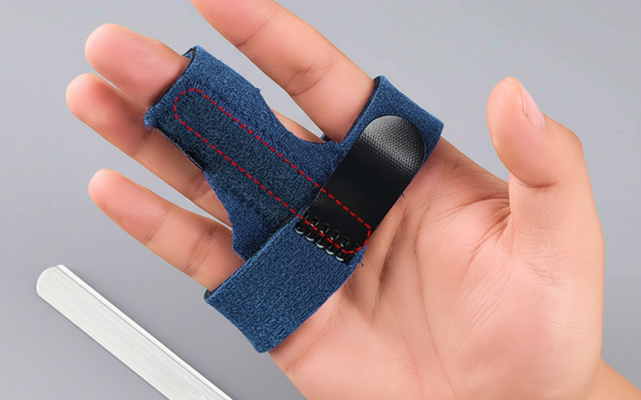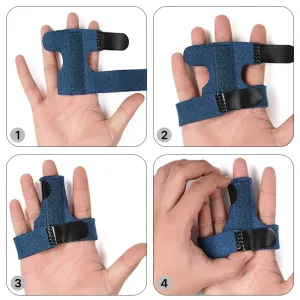 La sto usando all’anulare dopo una caduta. L’inserto in metallo lo tiene fermo mentre le cinghie si regolano facilmente, anche quando la mano si gonfia un po’.