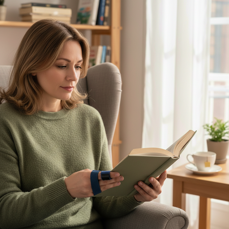 Mi sono svegliata con le dita rigide per vecchi infortuni. Questo tutore impedisce all’articolazione di piegarsi troppo e rende le faccende del mattino molto più facili.