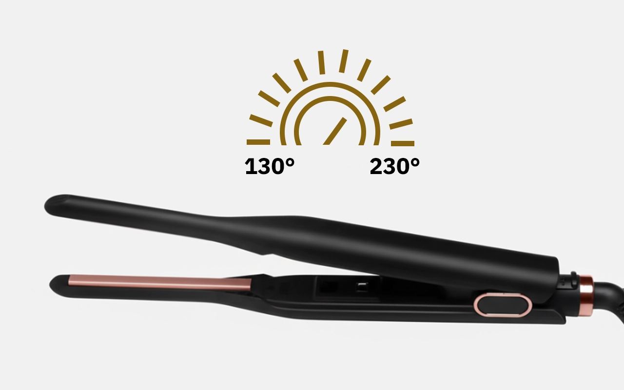 Imposta facilmente la temperatura per vari stili. Le piastre sottili ti permettono di raggiungere le radici, offrendo una finitura ordinata.