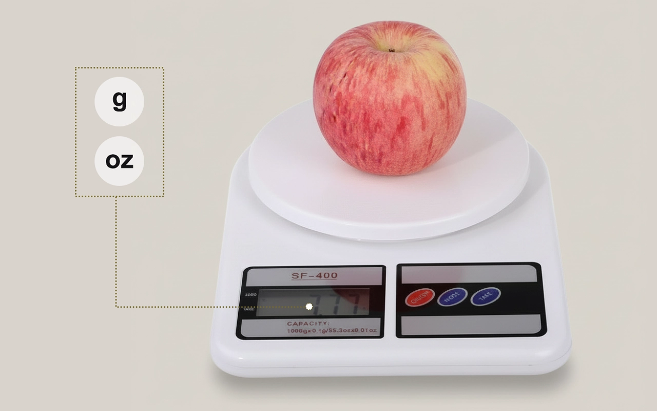 La nostra bilancia da cucina ti permette di scegliere tra oz e kg.