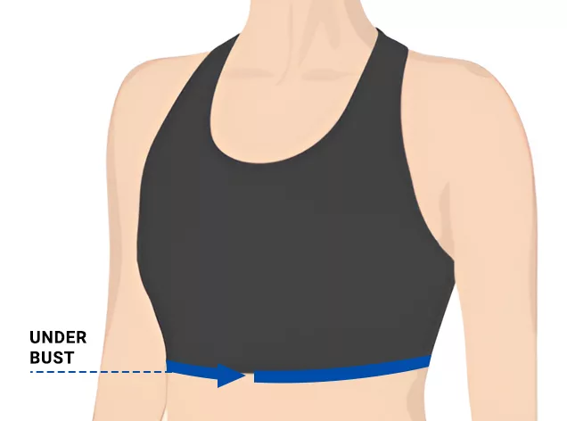 - 2. Per trovare la misura sotto seno, avvolgi il metro attorno alla cassa toracica, direttamente ed equamente sotto il seno.