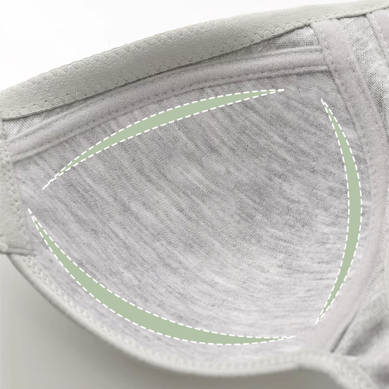 Le coppe ti sostengono in modo naturale senza ferretti che schiacciano o pungono. I lati lisci impediscono le fuoriuscite e la forma rimane perfetta.