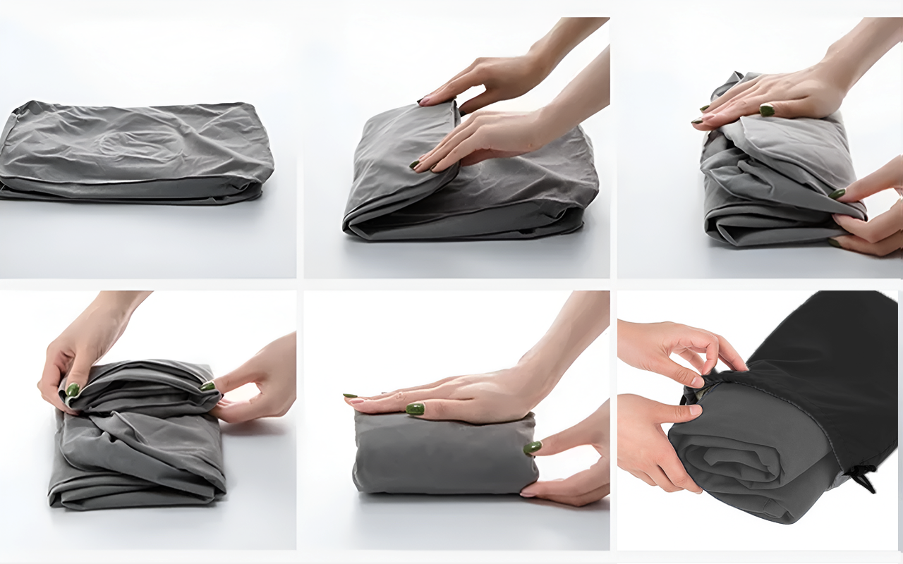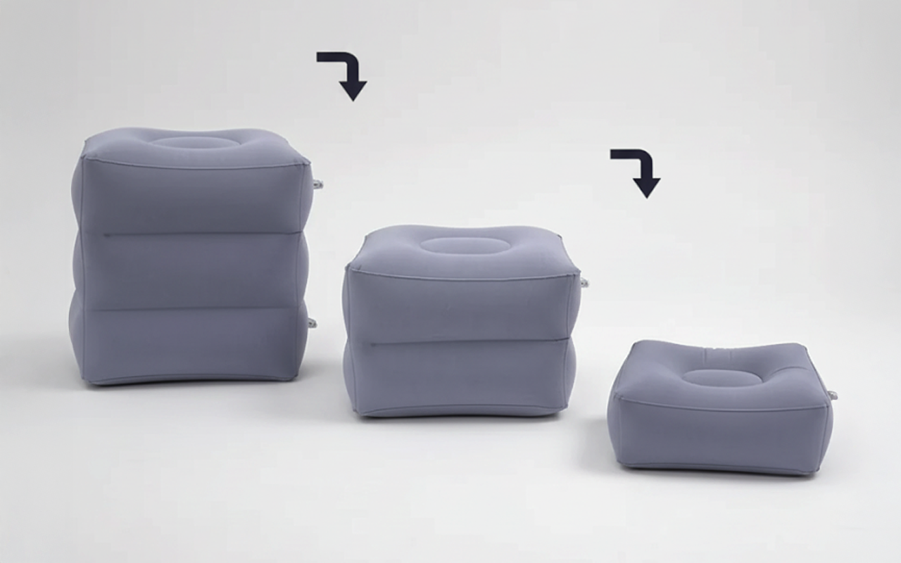 Si ripiega facilmente per entrare in qualsiasi borsa o zaino. Porta sempre con te il poggiapiedi gonfiabile Ortorex senza aggiungere peso.