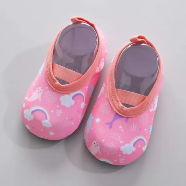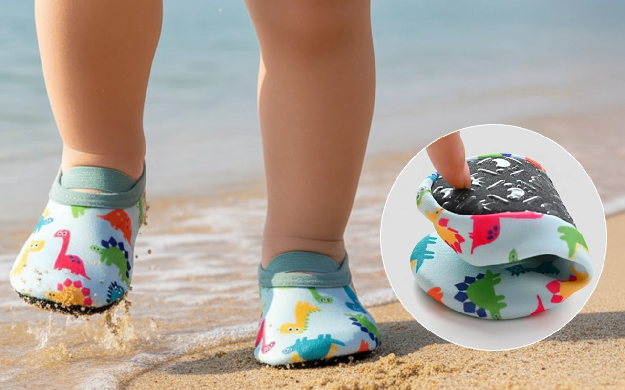 Le nostre scarpe aderiscono saldamente alle superfici bagnate, aiutando i bambini a rimanere stabili.