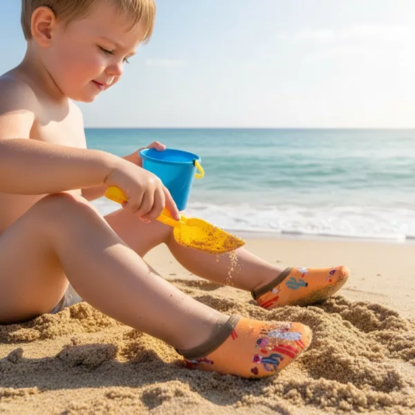 Le scarpe da spiaggia Ortorex per bambini si adattano a ogni passo senza stringere né sfregare. I bambini possono muoversi liberamente durante il gioco in acqua.